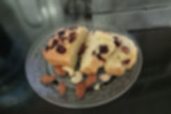 להעביר לתבנית ומעל לפזר את הפירות היבשים. לקחת כף ולערבב בעדינות כדי שהפירות לא ירדו למטה